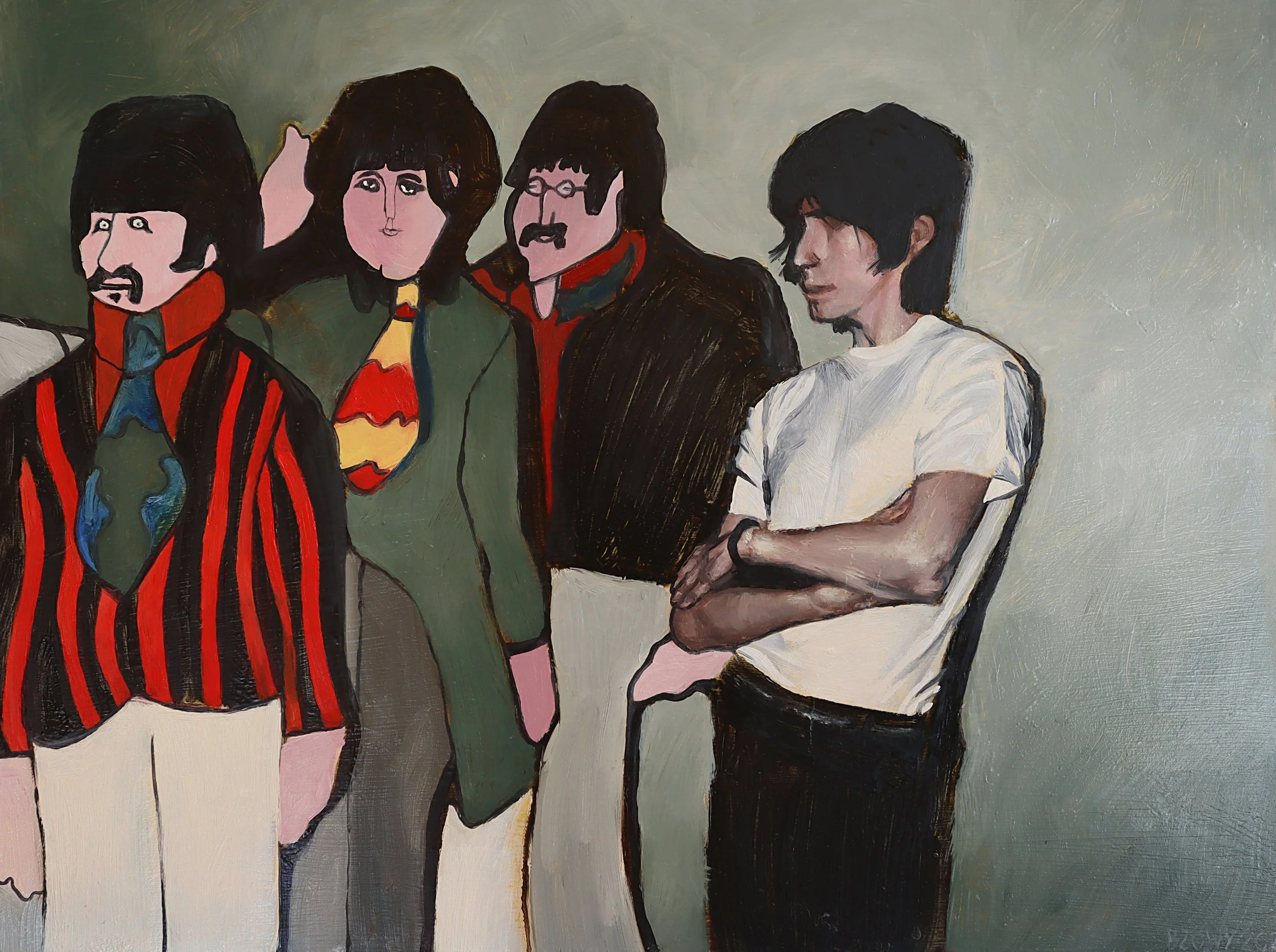 Bowie and the Beatles, 2021, oil on board, 30.4 x 45cm